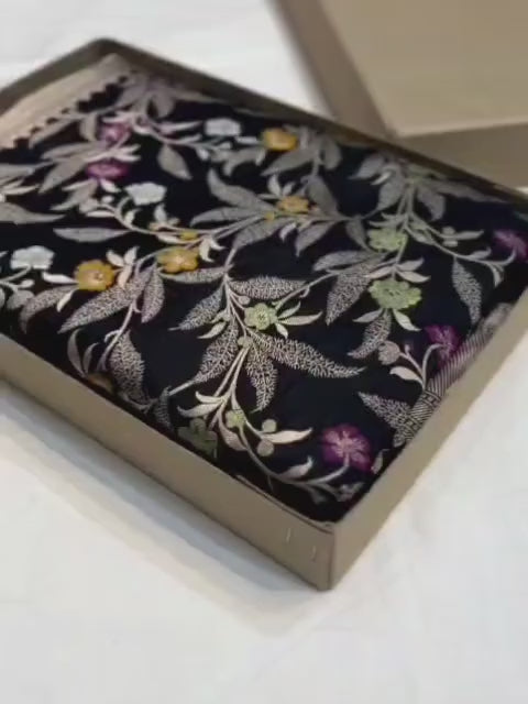Introducing our newest launch - Black Pure Banarasi Mashru Silk Sarees! Made with high quality materials and featuring stunning Meena Kari work, these sarees are perfect for any occasion. The lightly woven zari border and rich jacquard pallu add an exclusive touch. With a smooth texture and a variety of colors, these sarees are sure to satisfy all our customers. Book now and experience the ease and elegance of our sarees.
