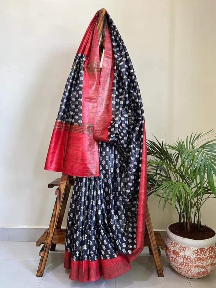 Pure Tussar gicha screen print sarees with running blouse. Silk Mark Certified.