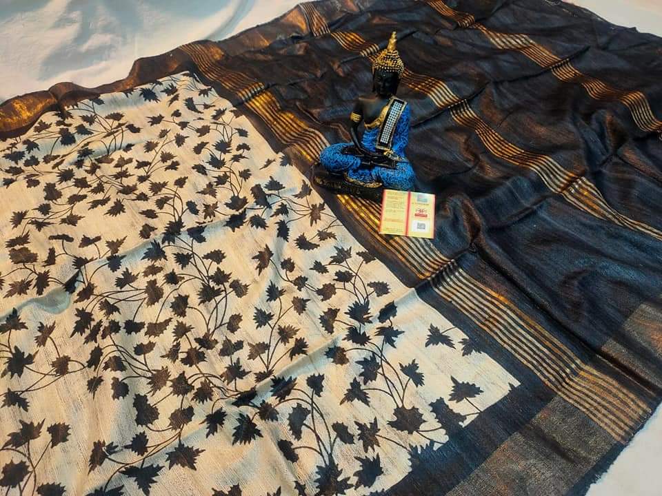 Pure Tussar gicha screen print sarees with running blouse. Silk Mark Certified.