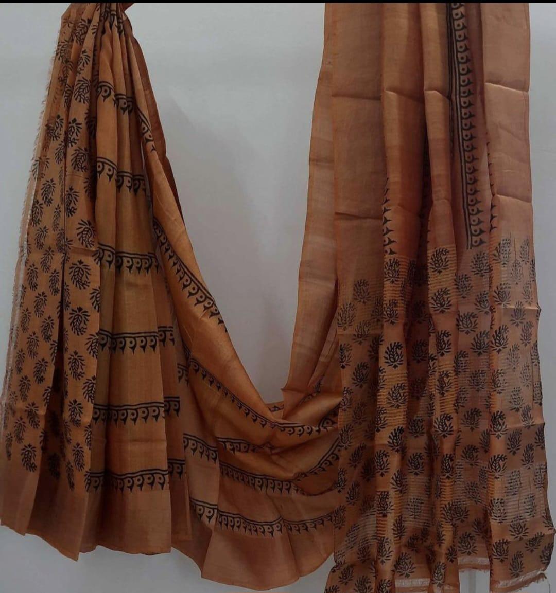 Block printed pure desi tussar silk handloom saree with blouse ,silk mark Certified.