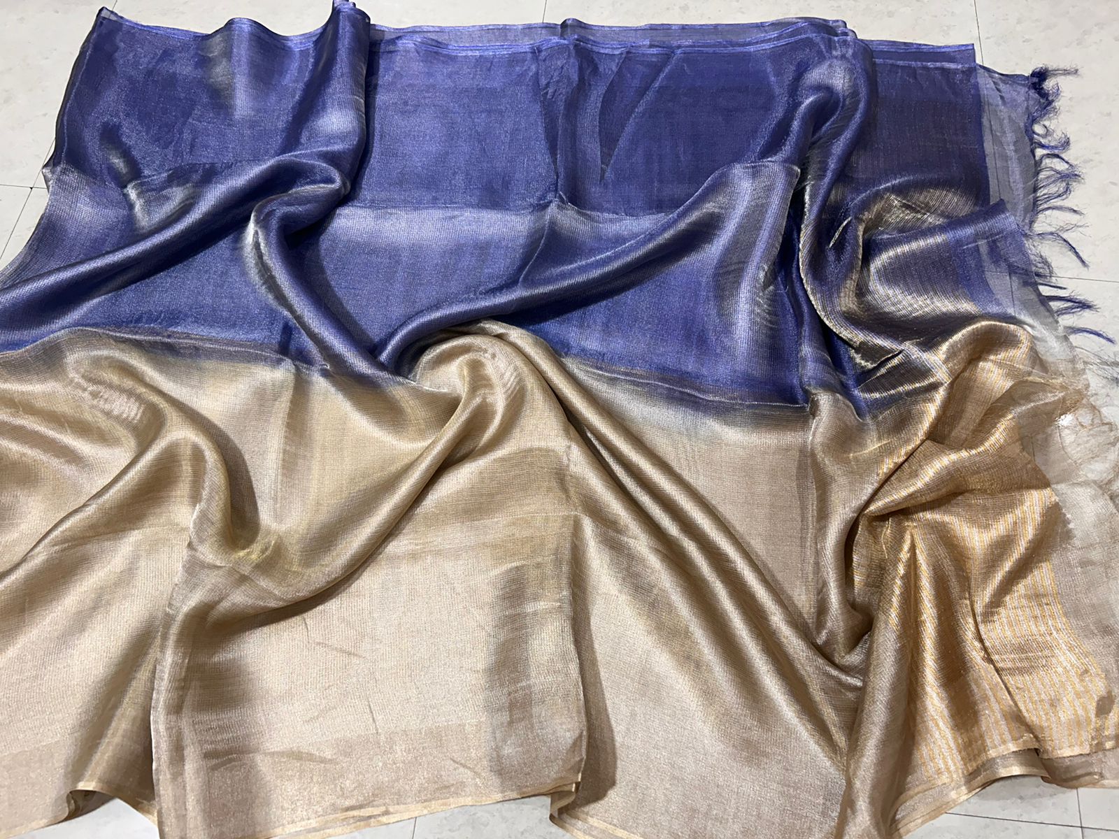 Pure Tussar tissue silk dual shade sarees with running blouse. Silk Mark Certified.