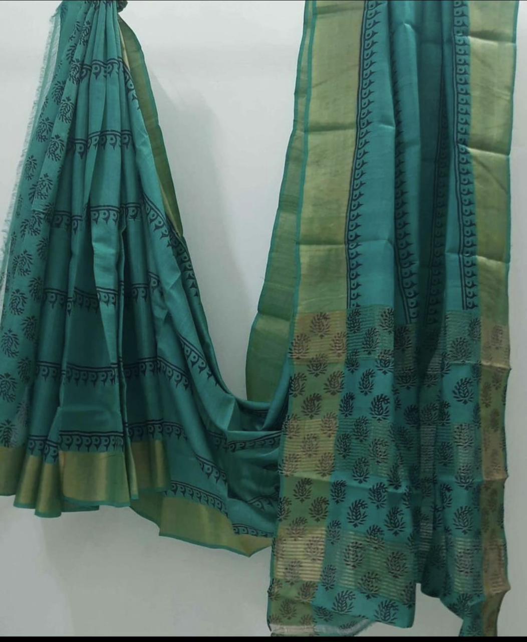 Block printed pure desi tussar silk handloom saree with blouse ,silk mark Certified.