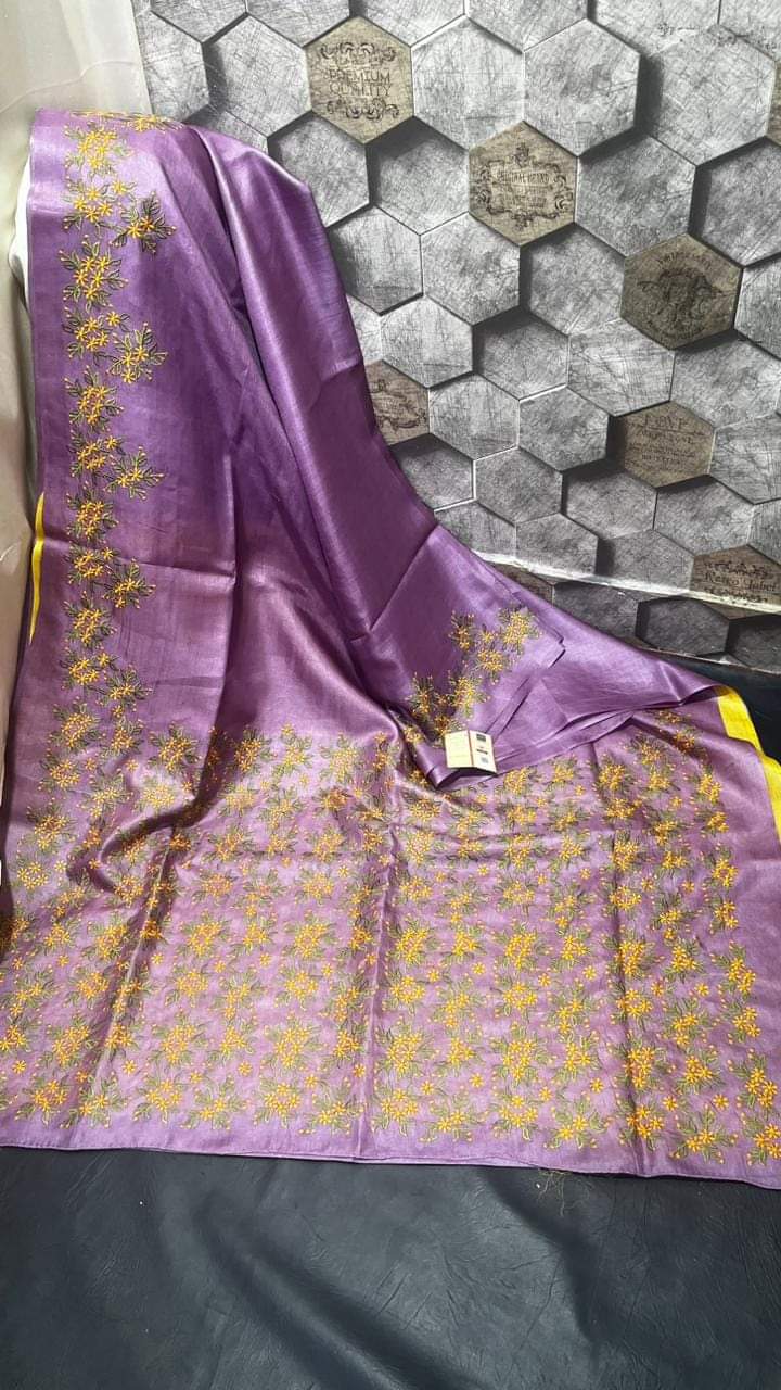 Pure Tussar silk embroidery sarees with running blouse. Silk Mark Certified.