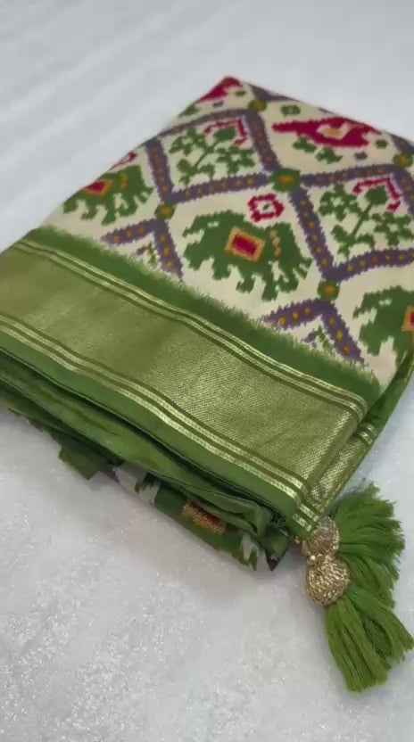 Olive green munga crepe patola silk sarees
