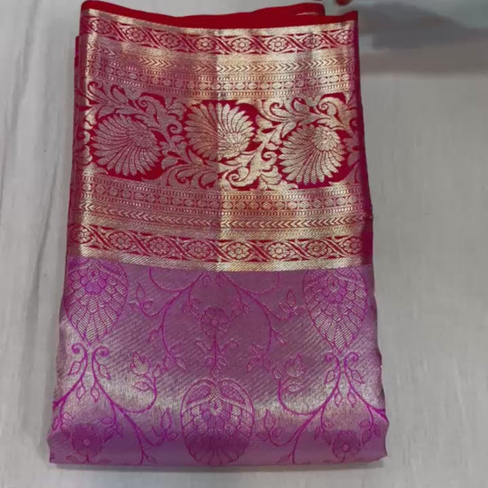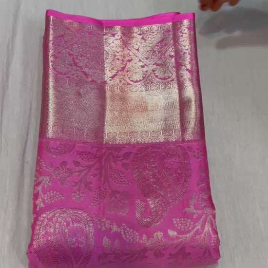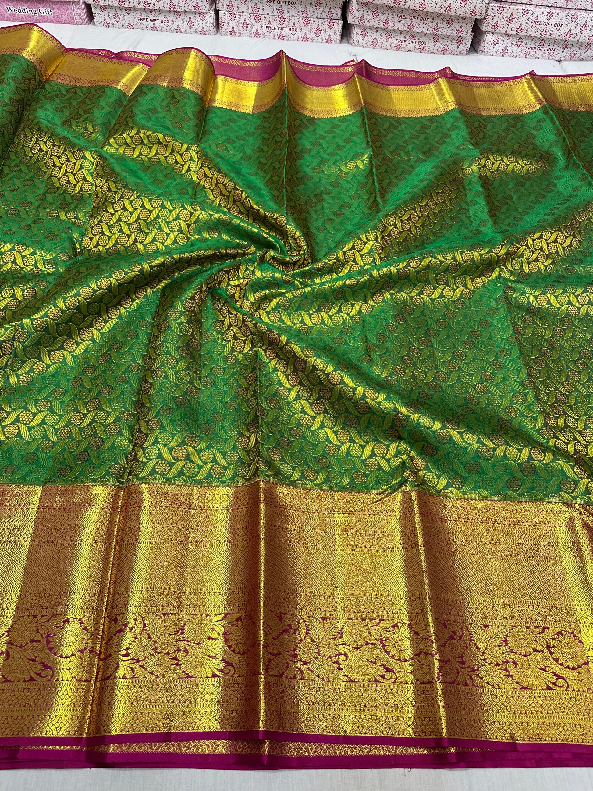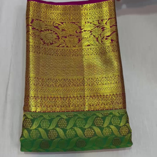 Discover the exquisite elegance of our Pure Kanchipuram Silk Wedding Sarees. Made with the finest quality silk, each saree is Silk Mark certified for authenticity. Perfect for any special occasion, these sarees exude luxury and sophistication.
