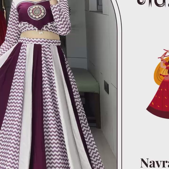This wine and white lehenga showcases timeless Ethnicity With Muslin Leriya Touch ups,Designed for dance and devotion,Let your Navratri look glow with this wine-toned lehenga with white leheriya stripes._✨🌸
