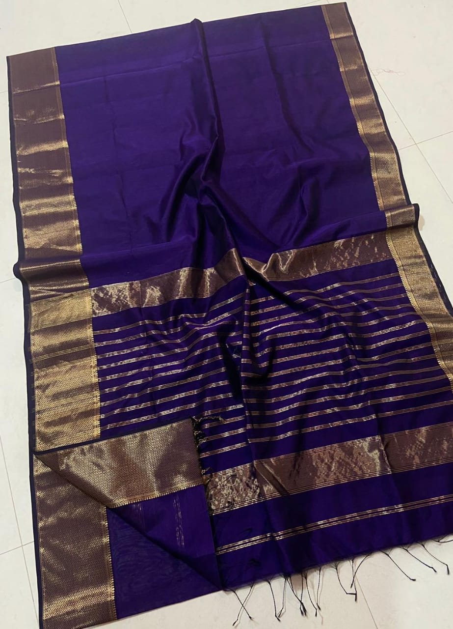 Purple blue Maheshwari big border sarees