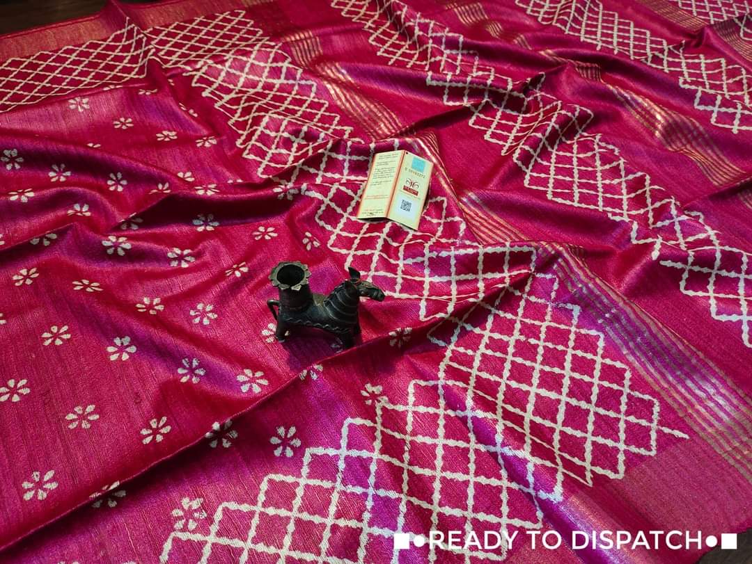 Pure Tussar gicha screen print sarees with running blouse. Silk Mark Certified.