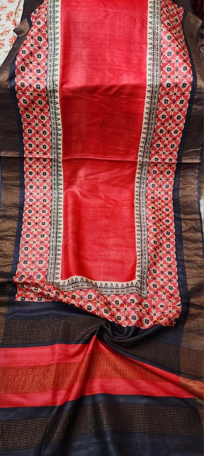 Red pure tussar silk printed sarees