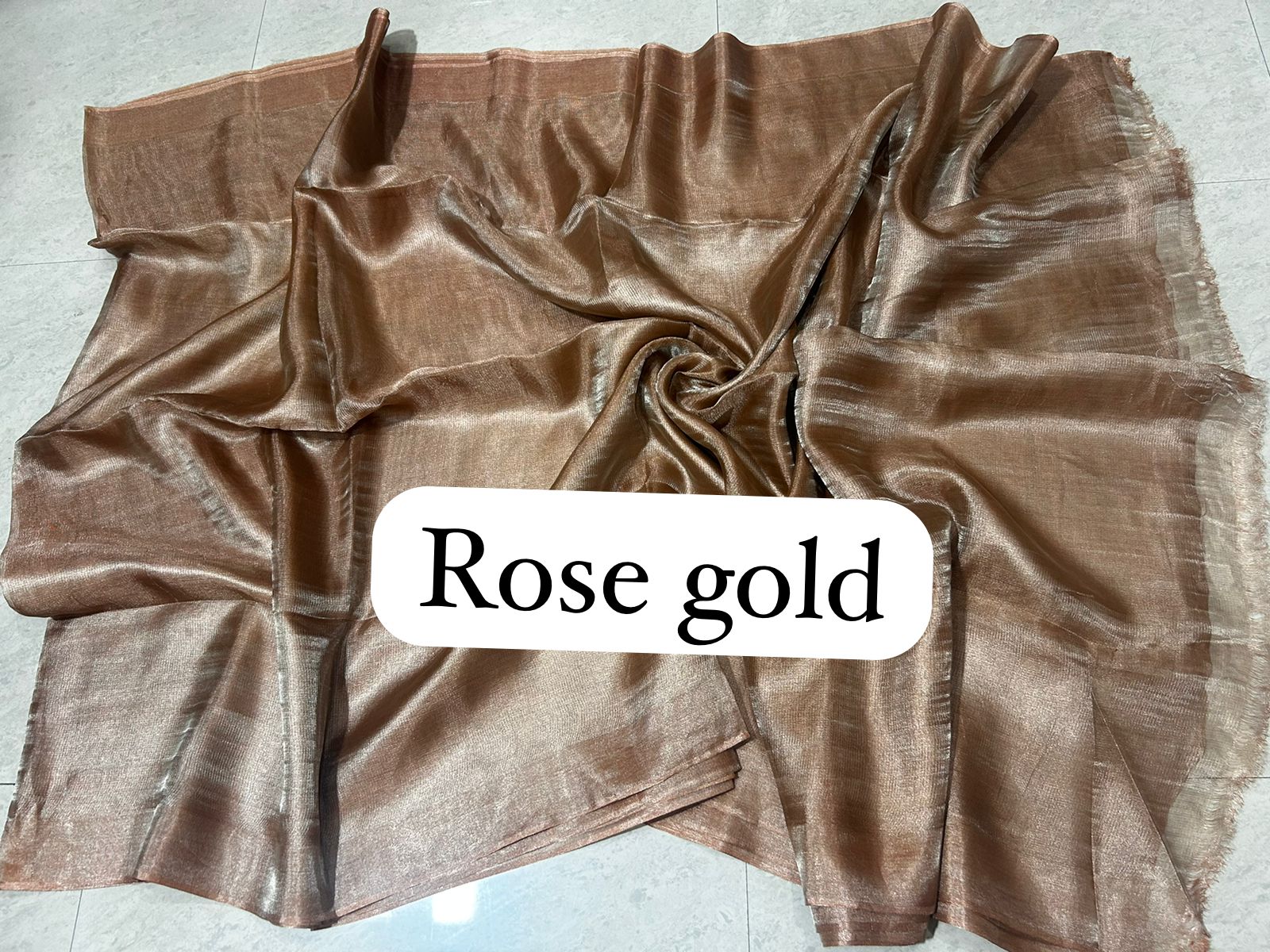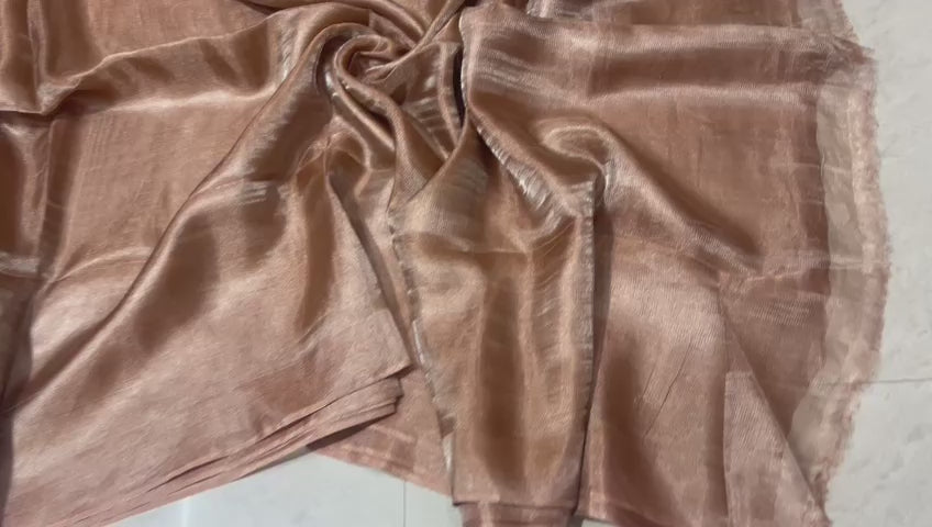 Rose gold Pure Tussar tissue silk sarees with running blouse.Silk Mark Certified.