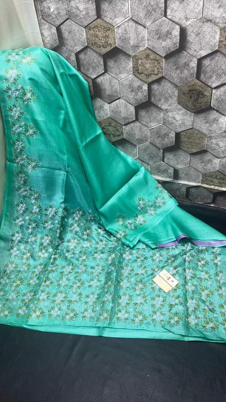 Pure Tussar silk embroidery sarees with running blouse. Silk Mark Certified.